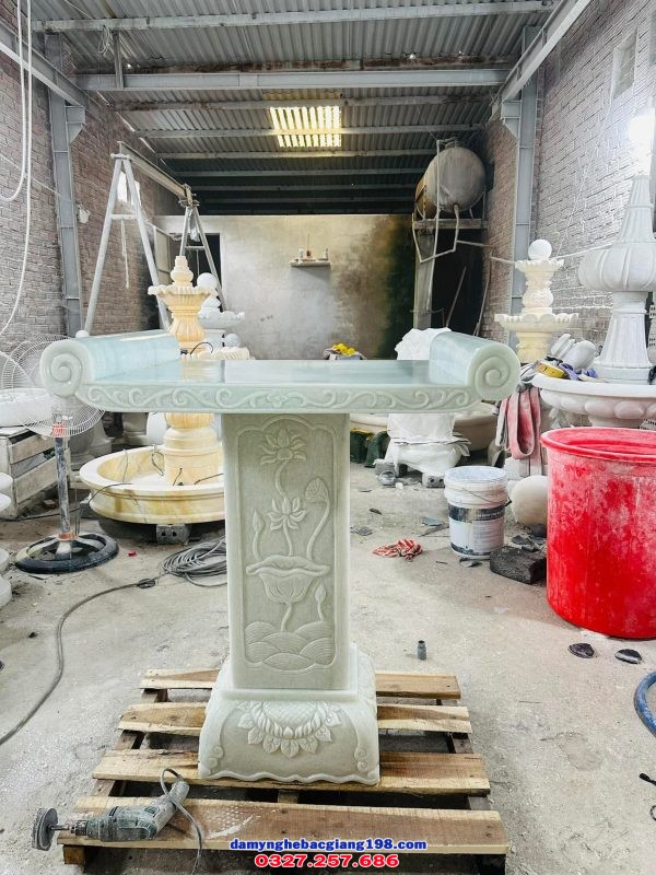 Bàn lễ đá trắng là hạng mục quan trọng trong không gian thờ tự, mang ý nghĩa tâm linh sâu sắc và giá trị thẩm mỹ cao. Với chất liệu đá tự nhiên bền vững và màu sắc trang nhã, sản phẩm góp phần tạo nên sự trang nghiêm, thanh khiết cho khu lăng mộ và nhà thờ họ.