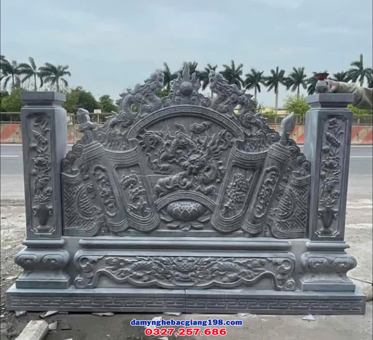 Cuốn thư đá là hạng mục không thể thiếu trong nhiều công trình tâm linh và lăng mộ đá. Với thiết kế trang nghiêm, chất liệu bền vững và ý nghĩa phong thủy tốt lành, sản phẩm góp phần bảo vệ không gian thờ tự và tôn vinh giá trị truyền thống lâu đời.