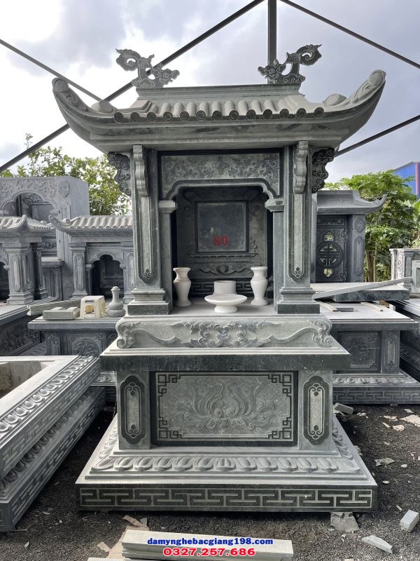 Lăng thờ đơn là mẫu lăng thờ đá được chế tác từ đá tự nhiên nguyên khối, thiết kế một khối liền mạch vững chắc, mang vẻ đẹp trang nghiêm và cổ kính. Sản phẩm là hạng mục trung tâm trong khu lăng mộ gia đình, dùng để thờ cúng chung tổ tiên, thể hiện sự tôn kính và đạo hiếu bền vững.